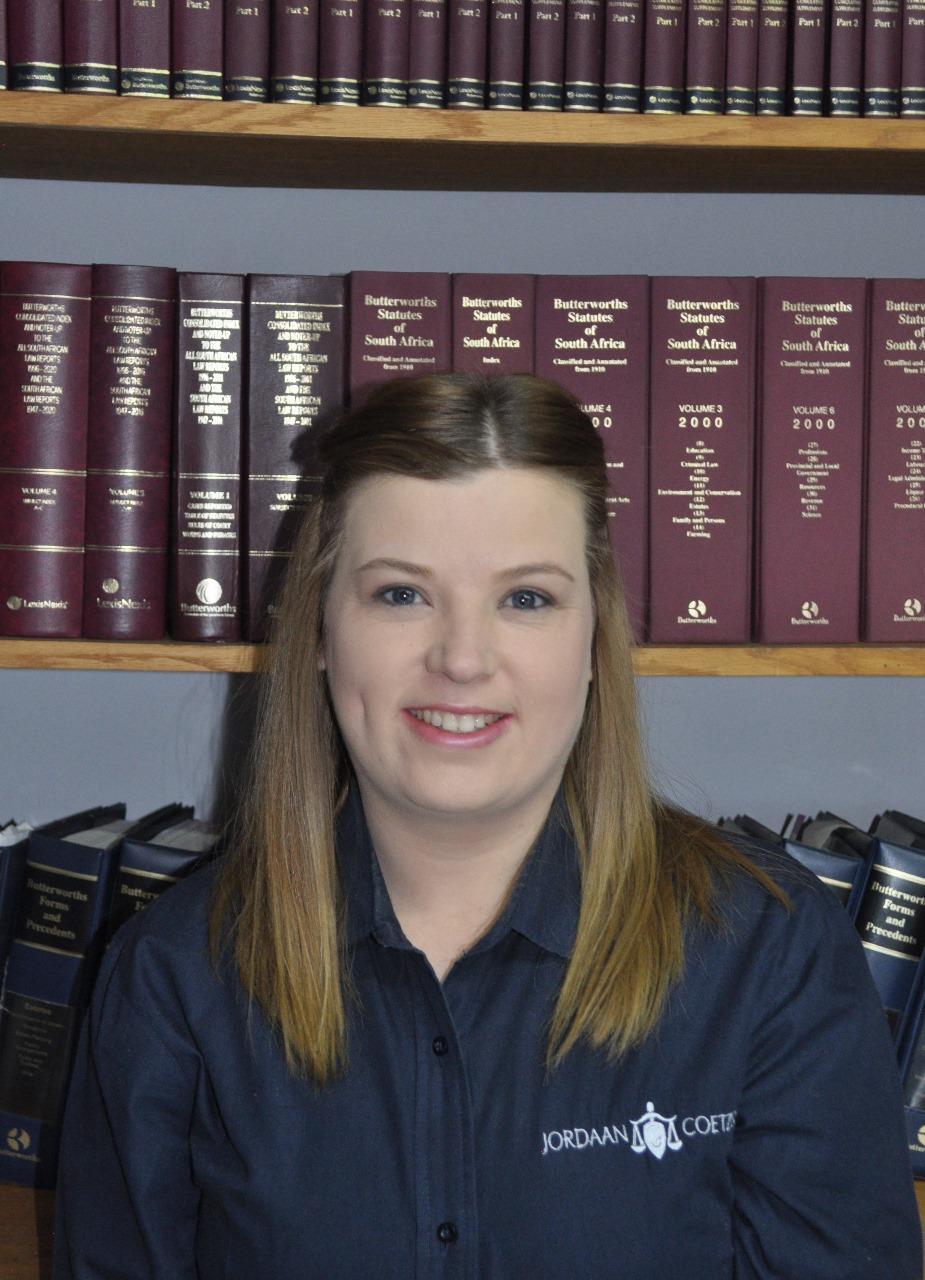 Mr. GB Jordaan Jnr holds an LLB from North-West University. His legal focus includes commercial law, property transactions, and contractual matters.